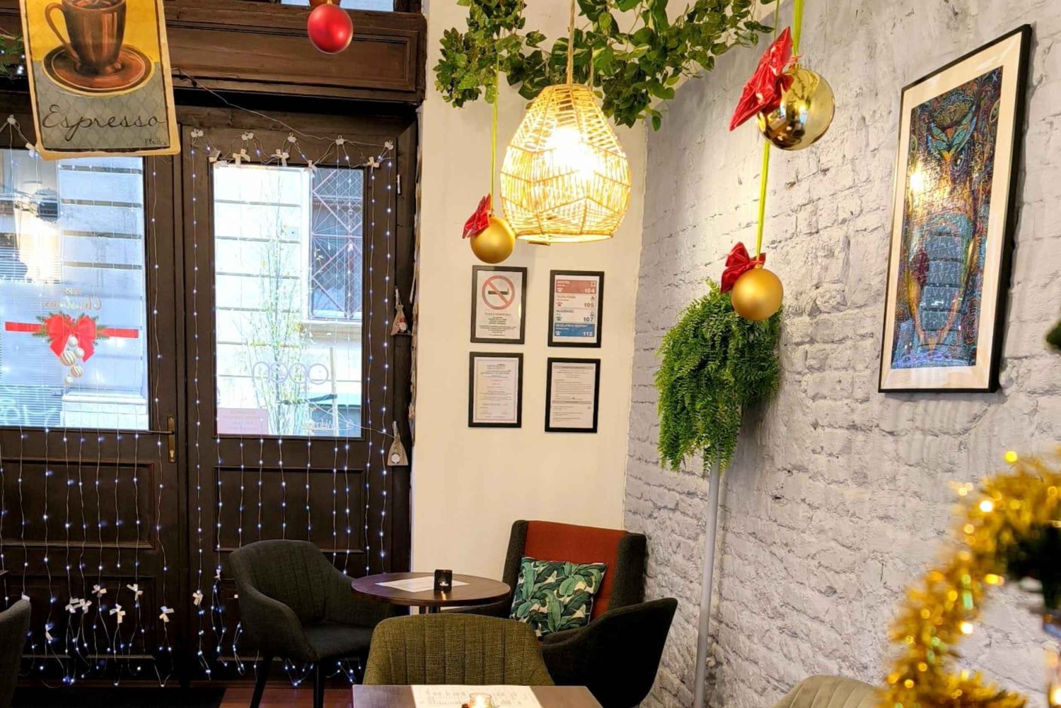 Este diciembre, huye del frío y entra en una pequeña y acogedora cafetería en la plaza Rákóczi. Las luces tenues, el olor de algo rico para comer y las melodías navideñas retro crearán el ambiente. Juntos haremos un pequeño viaje en el tiempo al Budapest de los años 70 y 80. Escucharás historias sobre cómo se celebraba la Navidad en aquella época y aprenderás un poco sobre la historia y los rincones ocultos de la legendaria plaza Rákóczi. Tendremos bocados húngaros sencillos y clásicos: sándwiches retro, algunos dulces conocidos como las bolas de coco y el «zserbó», además de bebidas calientes y frías como zumo de manzana especiado, sirope de saúco, limonada, té y café. Nada sofisticado, solo el tipo de aperitivos que podrías haber encontrado en una reunión familiar de aquella época. Te invitamos a escuchar, compartir tus propios recuerdos (si los tienes) y charlar con los demás. Habrá una charla breve e informal sobre las tradiciones navideñas de Budapest en los años 70 y 80, con una pequeña presentación de fotos de archivo e historias personales.Includes