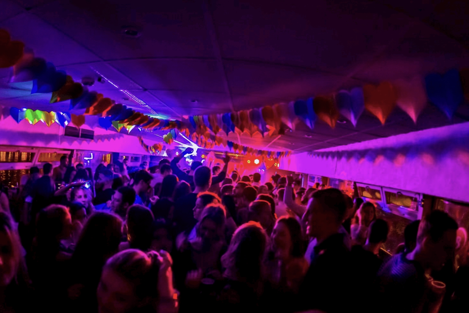 3-godzinna impreza na łodzi 1,5-godzinny rejs po rzece Dekoracje z motywem walentynkowym Zabawne gry w dopasowywanie Parkiet taneczny i taras na łodzi Muzyka od DJ-ów Zdjęcie z imprezyImportant Information