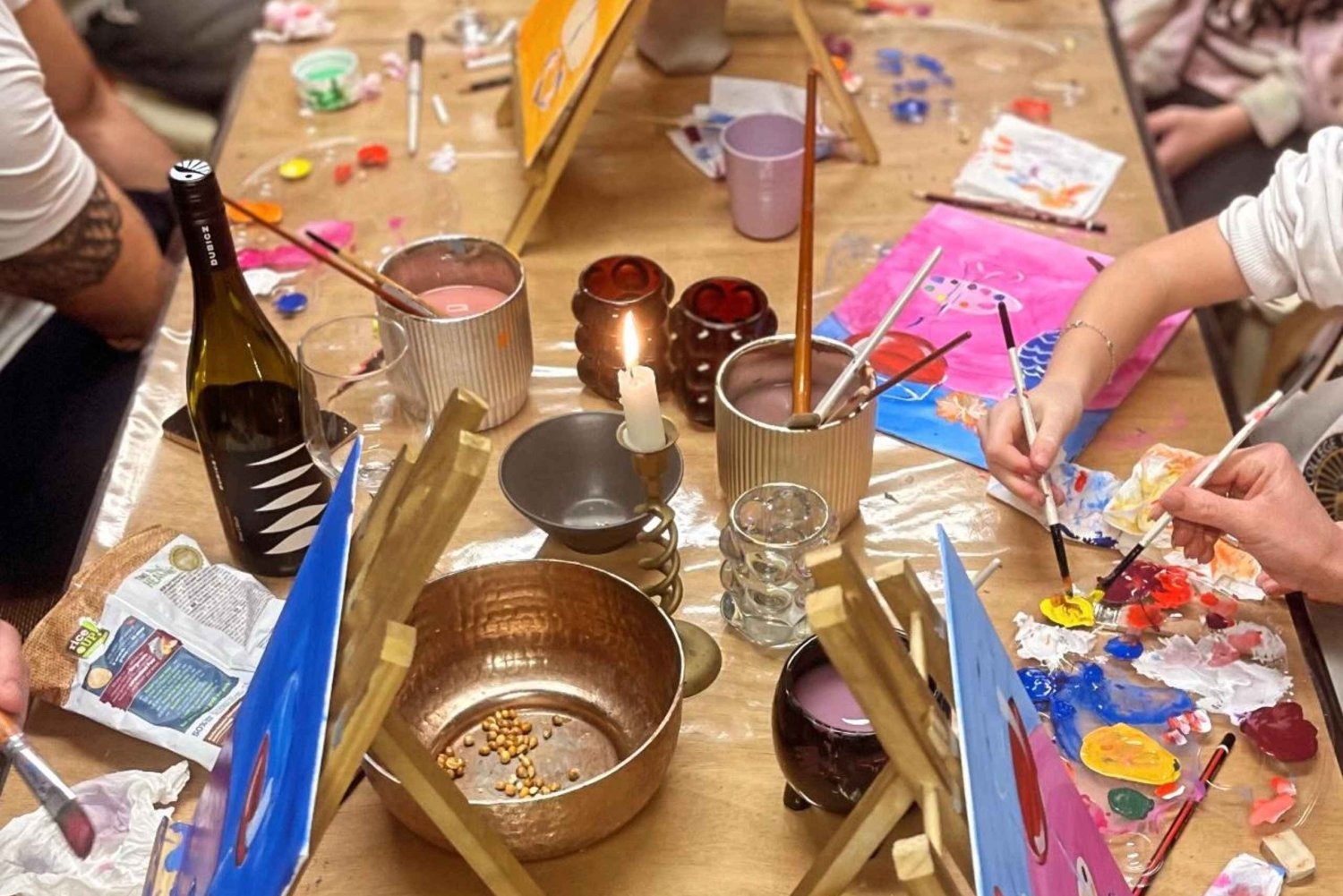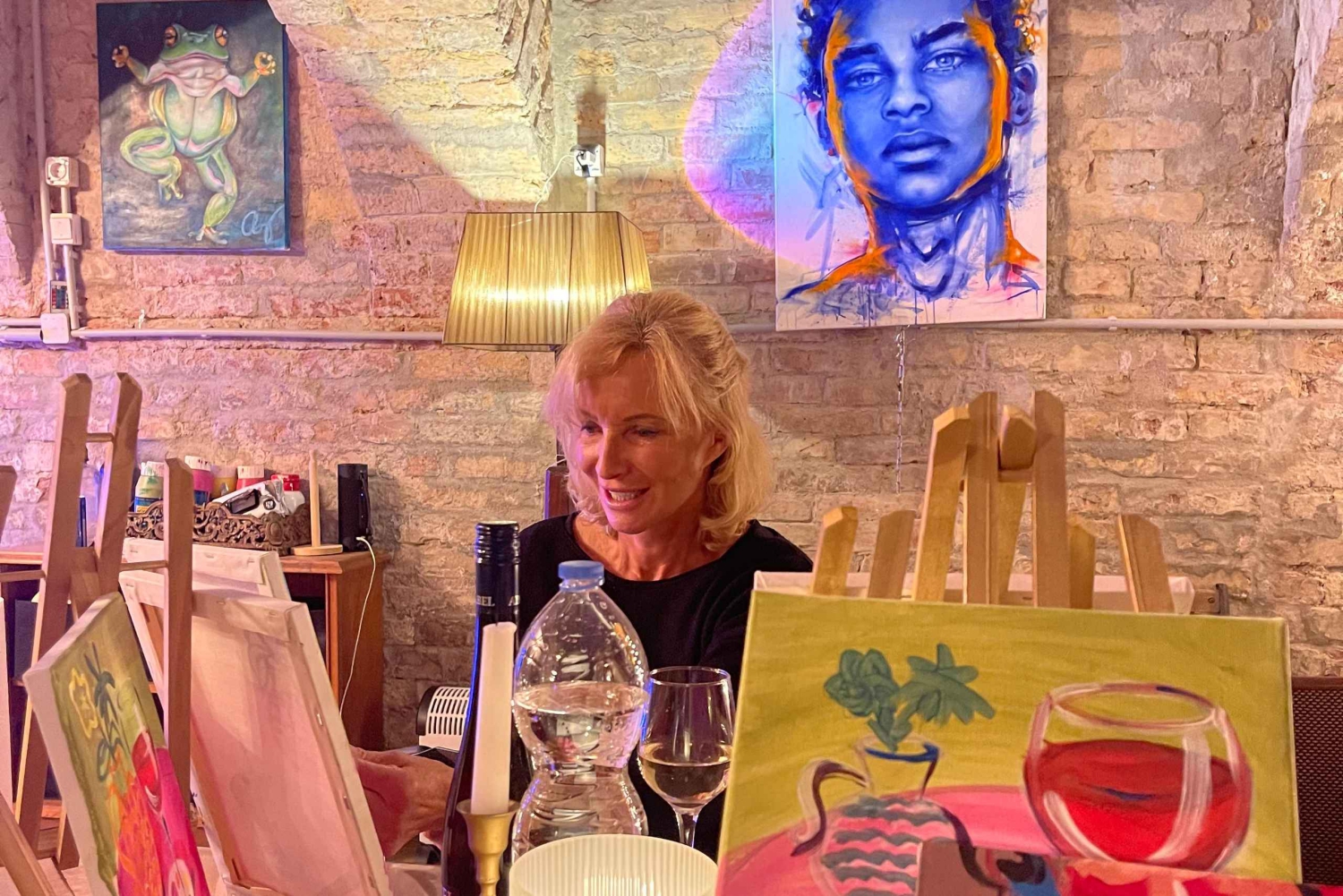1 RecensionerUpplev magin i att skapa genom en unik målar- och vinsession. Släpp loss din inre konstnär i en livlig, avslappnad atmosfär och skapa oförglömliga minnen med vänner eller medresenärer.